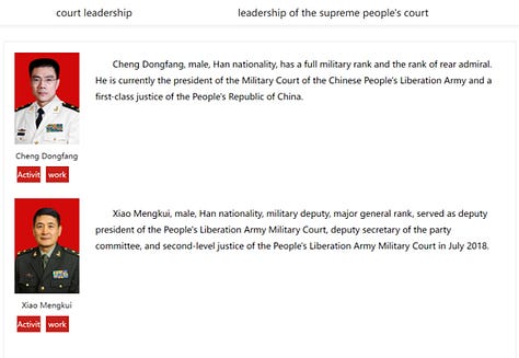 Analysis: While Cheng’s and Li’s removal and disappearance means they are under investigation, it does not mean they are guilty of any corruption or related charges. Both individuals’ biographies and names are still listed on official Chinese government websites such as the China Court, the Defense Ministry, and the State Council pages. Furthermore, both Cheng and Li still maintain other positions – Cheng is still a first-class justice while Li still retains his state councilor position – higher than the positions they would lose. Both individuals’ names can also produce results – such as news articles, videos, and biographies – when searched on the Chinese Internet. The lack of any removal of their names from the Chinese Internet and them maintaining other positions means that the Central Committee for Discipline Inspection’s investigation is still ongoing.